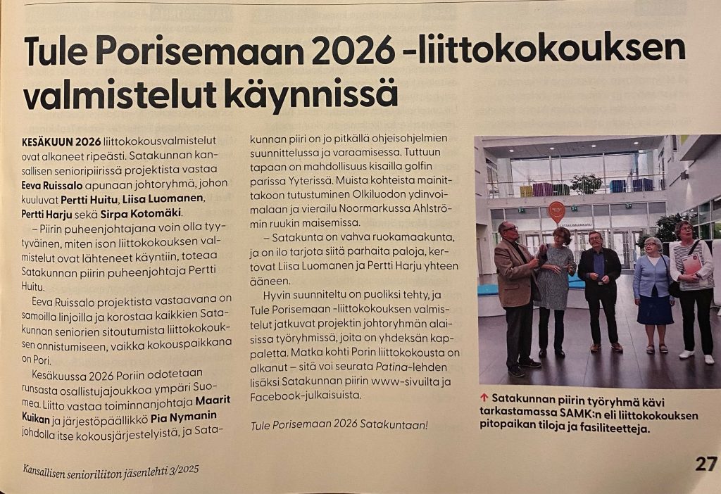 Tule kumppaniksemme jakamaan elämäniloa ja voimaa Tervetuloa mukaamme ja näkymään kesäkuussa 2026 pidettävässä Kansallisen senioriliiton liittokokouksessa ja jo sen valmisteluvaiheessa syksystä 2025.